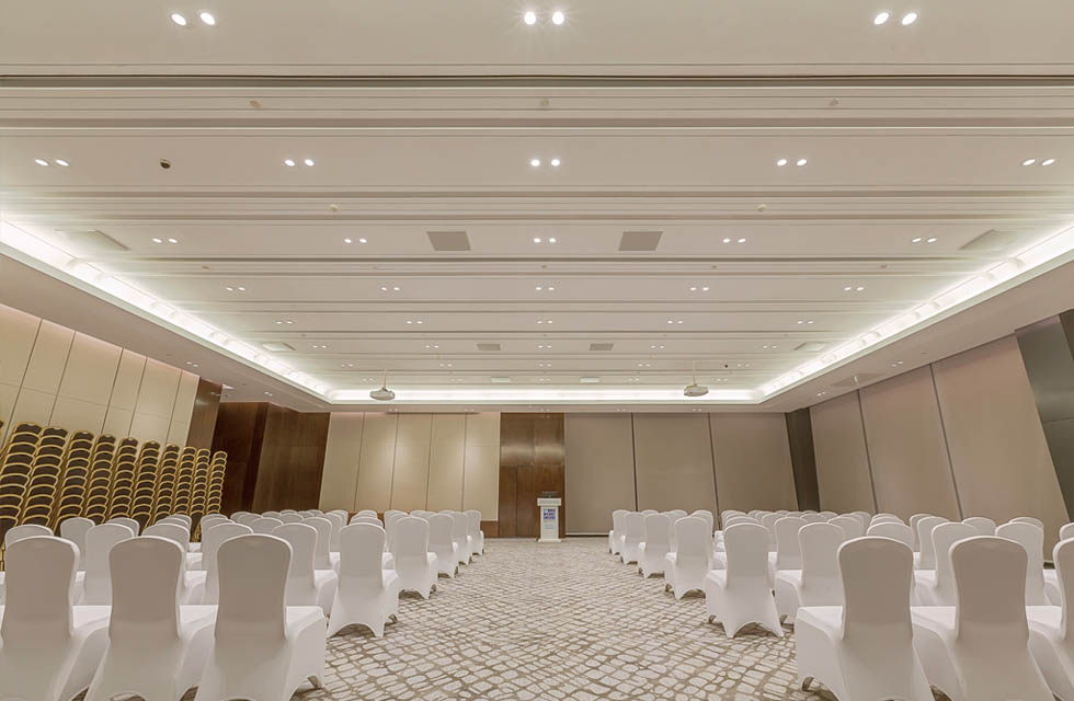 為了保證使用感受高效舒適,會(huì)議室中所有的裝飾裝修性設(shè)備在選擇時(shí)要求都十分嚴(yán)格,而燈具設(shè)備方面,WAC Lighting以領(lǐng)先于行業(yè)的前沿技術(shù)產(chǎn)品征服了室內(nèi)照明設(shè)計(jì)師。會(huì)議中心大量使用了由WAC提供的燈具設(shè)備,比如主會(huì)場(chǎng)主席臺(tái)上空選用了SLANA明裝筒燈系列;主會(huì)場(chǎng)入口、會(huì)議中心一層二層通道走廊、會(huì)議中心一層、二層各類會(huì)議室均使用了PLANA筒燈系列;入口天棚用的是LANNE 嵌入式防水筒燈系列;主會(huì)場(chǎng)及其他會(huì)議室的燈光勾勒都是WAC燈帶呈現(xiàn)的效果。