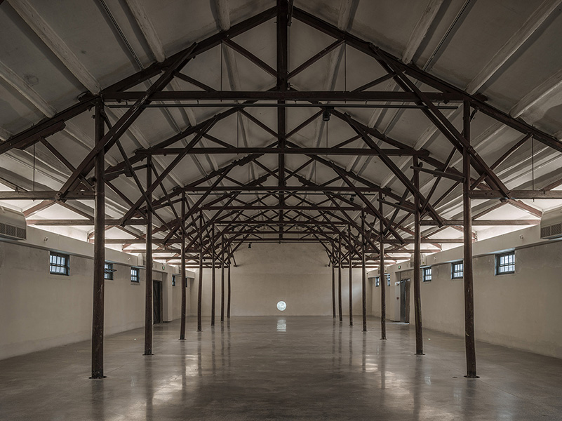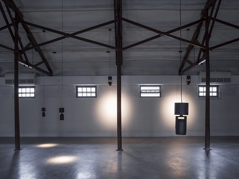特別為廠房內部藝術展廳量身定制的射燈,在WAC已有的Paloma pro軌道射燈基礎上,加裝可升降收納并以任意姿態(tài)懸停的系統(tǒng),該系統(tǒng)已獲得實用新型專利。在各廠房內部保障藝術品展示照明的靈活性,同時呈現(xiàn)原有屋架結構與材質肌理之美。每個展廳的屋架結構各不相同,軌道射燈系統(tǒng)均充分考慮藝術品照射角度合理、空間視線規(guī)避、調光與維護便利。在特別展廳,軌道射燈布置其中,展陳照明在視覺上不干擾內部結構,可升降收納并以任意姿態(tài)懸停又實現(xiàn)了低位展品的照明特寫并避免眩光和陰影。在由老廠房改造的展廳內部,暗藏在兩側墻面的線型燈具照亮屋面,用柔和的間接光呈現(xiàn)原有屋架結構。